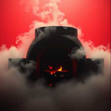 Dark ambient metal, Low bubbling drones & distant chanting, Slow build w/ ritualistic percussion, Ominous bass pulses like heartbeats, Whispered verses to growled chorus, Oven crackling sounds, Heat-warping effects, Ceremonial bells & breathing sounds, Unholy genesis atmosphere