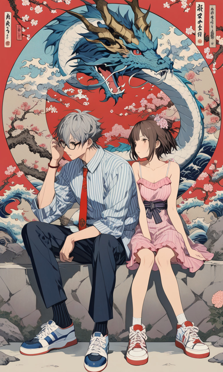 Male vocals, hard punk, shamisen, female vocals, drum and bass, lead guitar