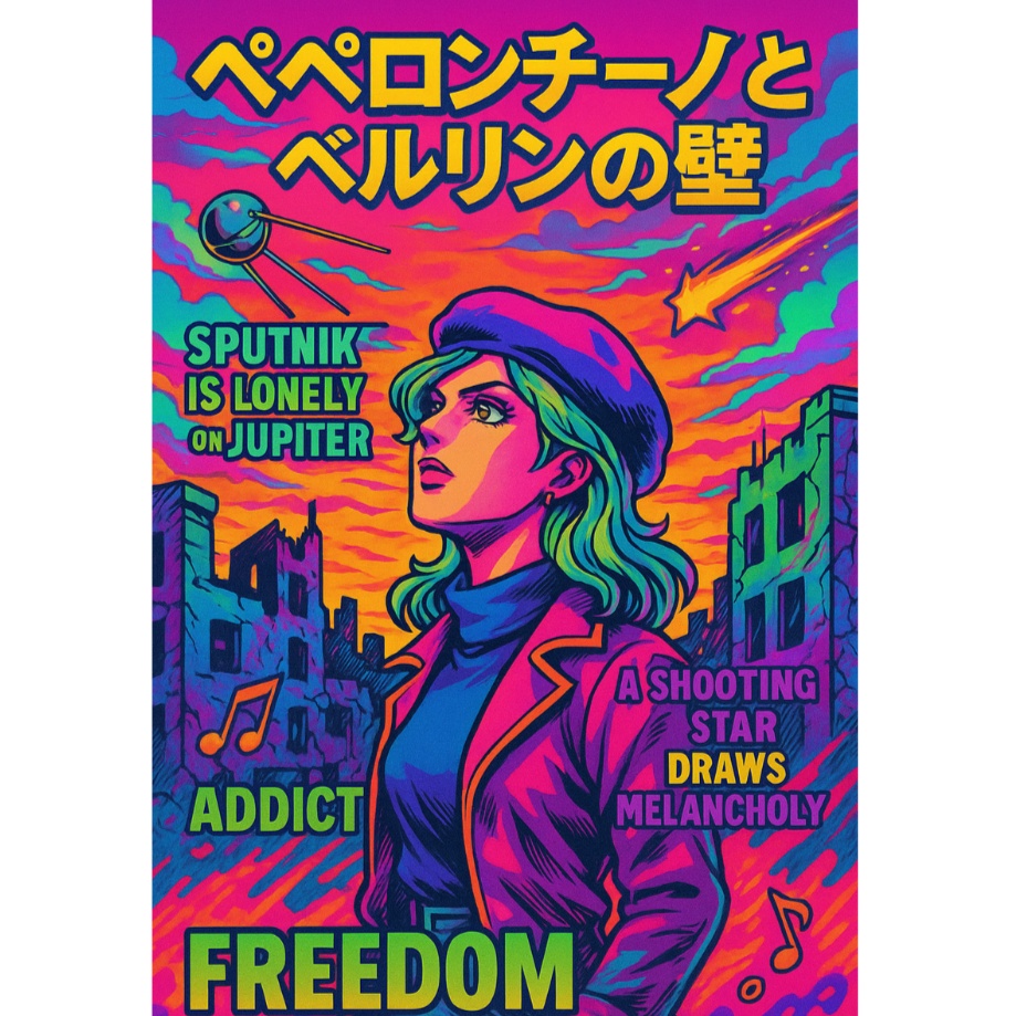 High-energy Japanese rap-rock fusion with fast-paced, dynamic verses and a haunting, melodic hook, Blend aggressive hip-hop beats with live rock instruments—electric guitar riffs, pounding drums, and atmospheric synths, The mood should feel intense, chaotic, and supernatural—like the soundtrack to a ghost-chasing, sci-fi anime, Vocals should be a mix of rapid-fire rapping and eerie, emotional singing, mostly in Japanese with some English phrases for punch, ”, Japanese rap rock, Anime opening, dark hip hop fusion, intense, energetic, neon, chase, glitch, occult, dimension, creepy nuts