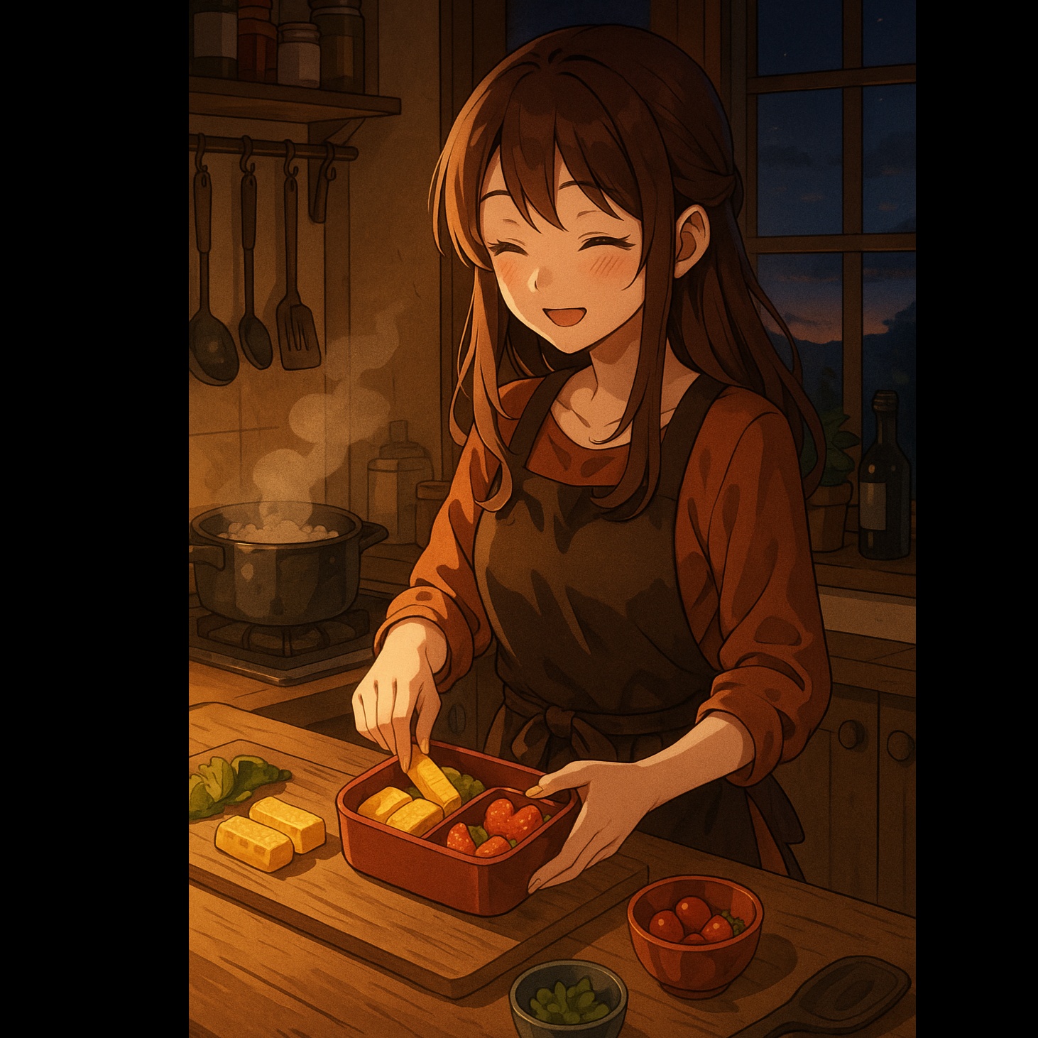 romantic morning pop, jazzy lofi, japanese & english lyrics, soft female vocal, cozy kitchen mood, bento love song, sweet and dreamy, acoustic textures, cute romance