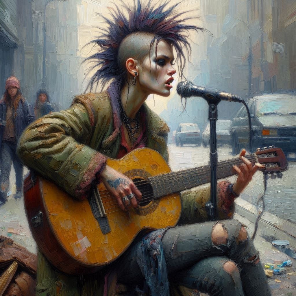 passionate female vocals, raw emotional indie rock with post-emo elements, lo-fi garage aesthetics, street-level intensity, urban j-pop crossover, anime, atmospheric guitar-driven soundscape, dolby atmos