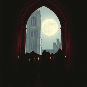 dark medieval, hurdy-gurdy drone, Gregorian chant, ominous organ, low strings, dissonant, ritualistic percussion, atmospheric, slow tempo, minor key, cathedral reverb, instrumental, Witch Procession, dark ambient medieval, nyckelharpa, droning strings, wordless female choir, occult ritual, unsettling, sparse percussion, frame drum heartbeat, 60 BPM, cinematic tension, instrumental, Dark Souls Boss Influence, dark fantasy orchestral, pipe organ, low brass drones, tremolo strings, ominous choir, medieval percussion, epic dark, dissonant intervals, slow build, instrumental