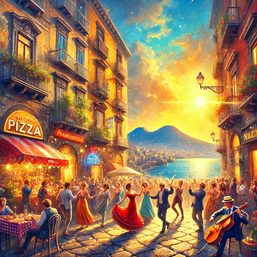 Tarantella, upbeat Italian folk dance, 6/8 time signature, mandolin and tambourine