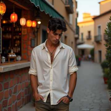 modern Mediterranean pop, light electronic elements, smooth dance groove, summery italian love song, breezy coastal night, soft synth layers