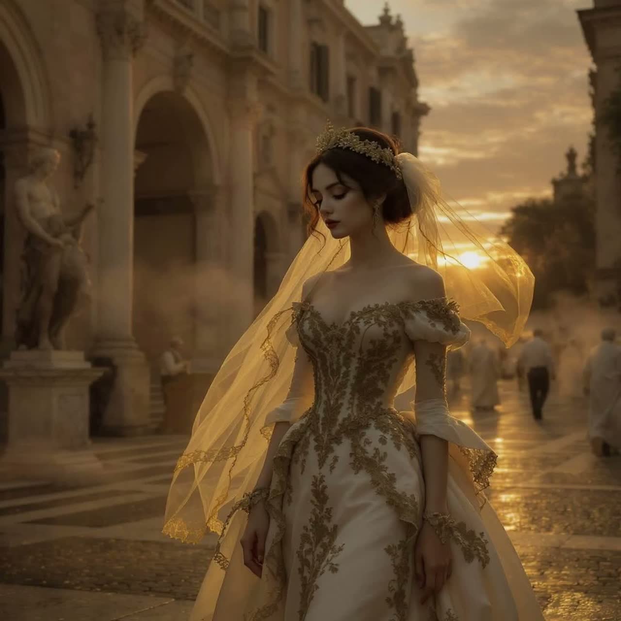 Baroque chamber pop, ornate harpsichord, lush strings, expressive female vocals, Italian language, melancholic yet romantic atmosphere, classical arrangements with modern production, bittersweet nostalgia, dramatic dynamics, chamber ensemble intimacy, 75 BPM, minor key
