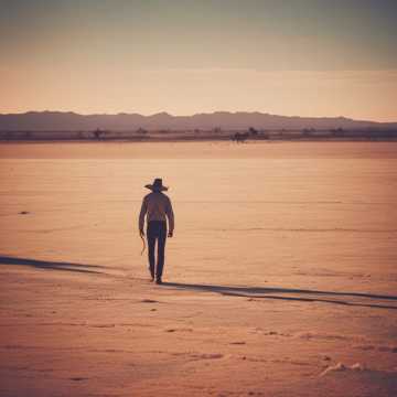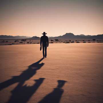 Haunting Western cine-ballad: slow, dusty acoustic backbone, pedal-steel sighs, felt piano, soulful low choir, falsetto-to-baritone lead, Layers spaghetti Western whistles, banjo plucks, & orchestral