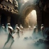 Angle-grinder samples stretched and pitched, low guitar feedback, tape-saturated synth pads for a smoky warehouse atmosphere, 🌌 MOOD