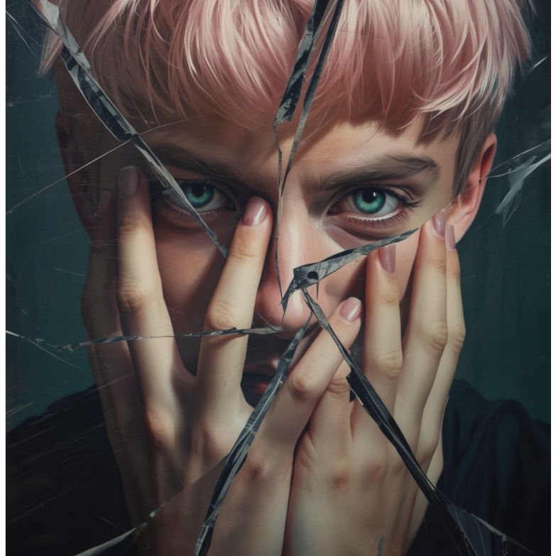 Industrial rock, alt metal, melodiccore, aggressive riffs, thick bass, punchy drums, syncopated groove, dark synths, edgy noise, digital processing, sound collage, machine‑like feel, mid‑tempo drive, experimental FX, split‑amp guitars, cool/urban coldness, dynamic arrangement, whisper/raspy leads, loudspeaker vox, layered vocals, playful yet gloomy, melodic hooks, cybernetic vibe, chorus → breakdown → distorted bridge, electronic samples, punchy mix, sharp transitions, heavy sound, looped beats, multi‑vox, club influence, robotic slam, tension/release, unconventional form, heavy×catchy fusion, mixed language (JP/EN), bold sound design, Recording: Intro “Dmm…” chest hum, close‑mic, light sat, low‑cut ~75 Hz, slow‑attack comp, tape warble; “sinking/fading”: formant down + LPF; “ghost”: micro‑double ±10 ms + short slap; Bridge “I think I am… fuck off!” 500 ms silence → one‑shot, gate cut, telephone EQ; Final chorus: degraded (8–12 bit, 11–22 kHz) + parallel clean, ‑scream