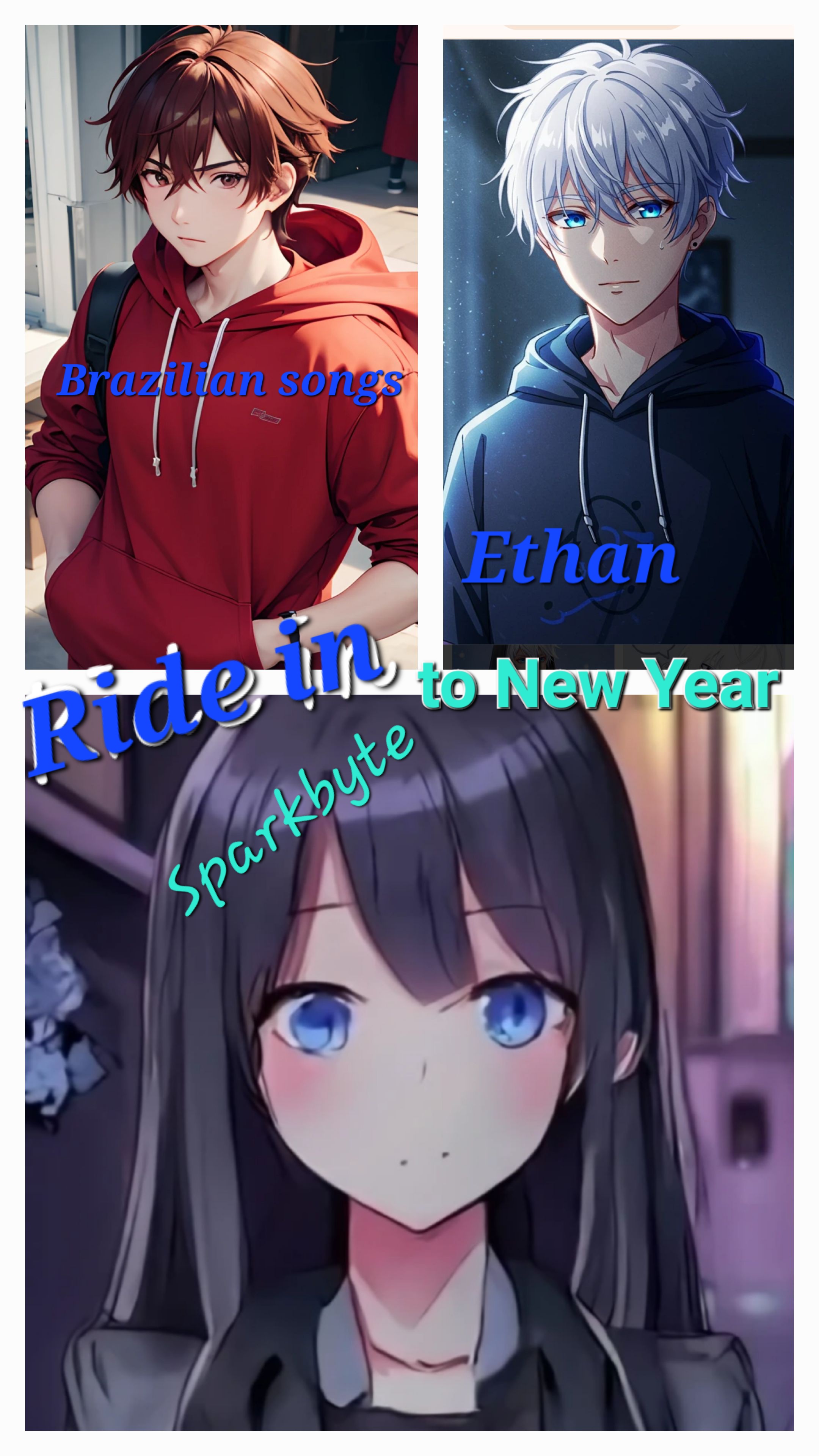 Nightcore hardcore dubstep phonk track, fast tempo (165–175 BPM), dark neon cyberpunk night-drive vibe, heavy distorted bass, aggressive hardcore dubstep drops, phonk cowbell with gritty 808s, strong sidechain, glitch effects, cinematic risers, trio sibling vocals (2 male, 1 female), female lead vocals (Sparkbyte) very high-pitched Nightcore style, bright, airy, energetic, slightly sped-up, clear and melodic, male vocals (Ethan & BRASO) deeper and powerful, supportive harmonies, alternating verses, call-and-response ad-libs, vocal chops and stutters in drops, emotional but confident delivery, New Year theme, 5 heavy drops, punchy kick, crisp hi-hats, melodic breakdowns between drops, festival-ready EDM, clean mix, loud polished mastering