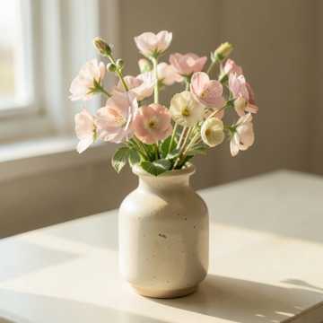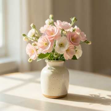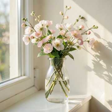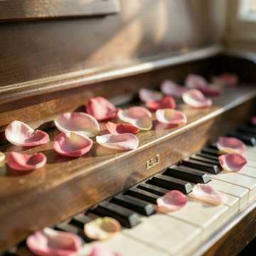Instruments: warm acoustic piano (main), soft upright bass, brushed jazz drums (light), gentle ambient pad, subtle strings texture, Structure: start immediately with lyrical piano motif, storytelling flow: Theme A → expressive variation → Theme B (richer harmony) → development with emotional phrasing → piano improvisation break → return theme → soft lingering outro, extend sections for ~4 minutes, Performance: more lyrical phrasing, singing-like melody, expressive touch, smooth dynamics, avoid busy notes, focus on emotional flow and clarity, Mood: small bouquet held in hands, quiet story unfolding, warm and slightly sentimental, peaceful spring afternoon, soft and touching, gentle emotional resonance