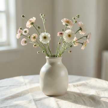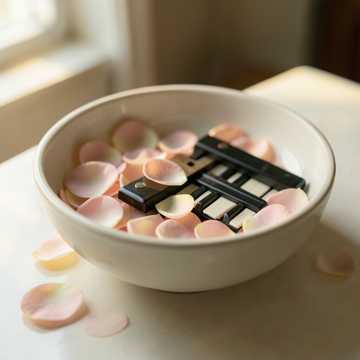 Instruments: warm acoustic piano (main), very soft upright bass (minimal), brushed jazz drums (barely present), light ambient pad, faint strings texture, Structure: start immediately with sparse piano motif, minimal flow: Theme A → space-heavy variation → Theme B (slightly warmer) → restrained development → short piano improvisation → return motif → soft decay outro, extend sections for ~4 minutes, Performance: minimal notes, more silence between phrases, delicate touch, very clean articulation, avoid dense playing, focus on breathing space and subtle expression, Mood: quiet hand arranging flowers, small sounds in still air, very calm and intimate, almost silent room, soft and delicate, deeply relaxing without heaviness