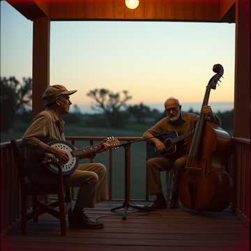Raw, authentic Delta Blues duet performed at a slow, deliberate tempo (68–72 BPM) in a minor key, The groove is patient and grounded, leaving space between phrases for breath and reflection, Instrumentation is sparse and organic: resonator slide guitar with gritty bottleneck phrasing, muted upright bass walking softly beneath the melody, brushed snare with light rim taps, and a subtle foot-stomp pulse anchoring the rhythm, Two clearly separated lead vocals, Frankie delivers a weathered male baritone, half-sung and half-spoken, conversational and reflective, carrying the weight of experience, Francine answers with a smooth, steady female alto—warm, centered, and emotionally reassuring, Verses alternate cleanly between voices; the chorus blends gently in harmony without crowding or overlap, The bridge includes restrained spoken delivery with natural pauses, Recorded as if live on a wooden front porch at dusk, Natural room ambience is present—night air, wood creaks, breath between lines