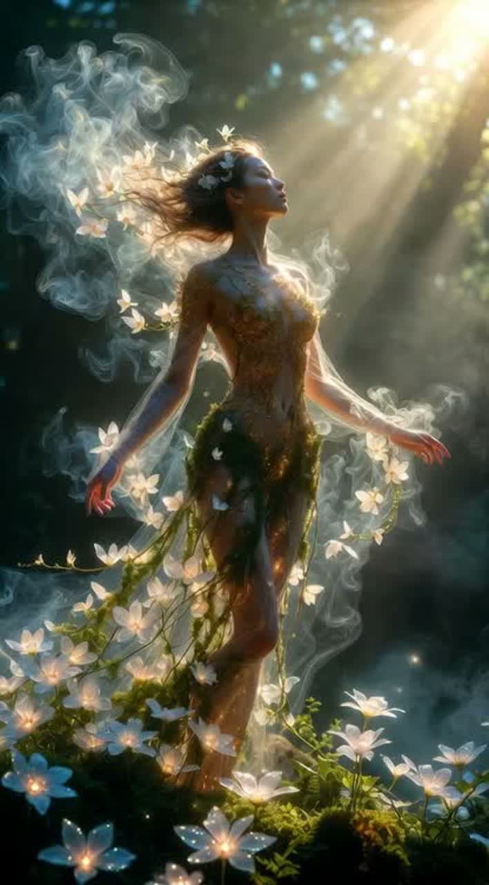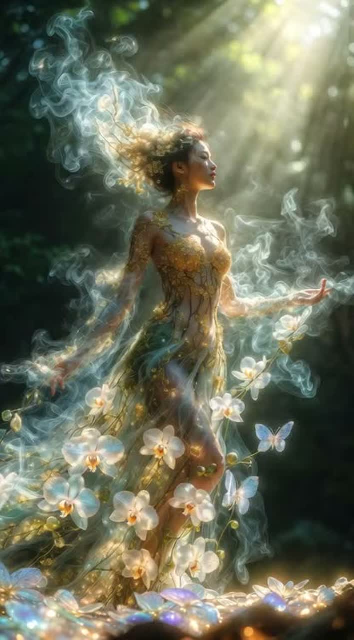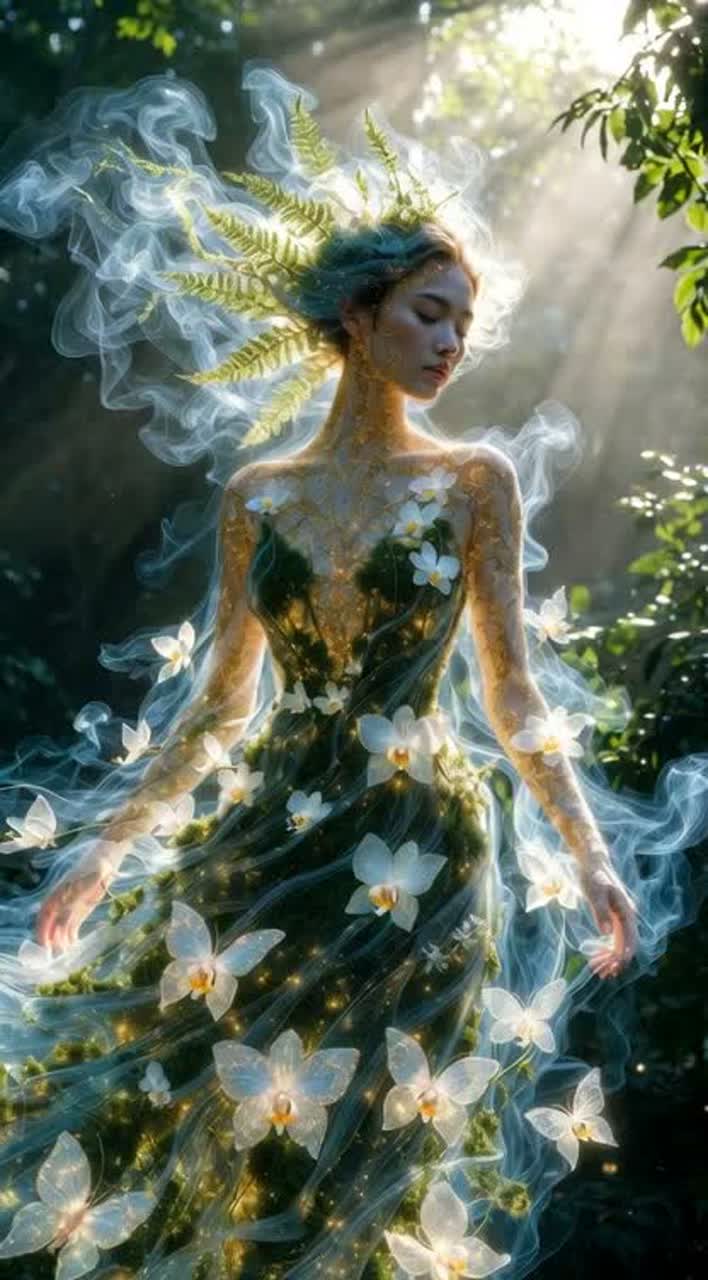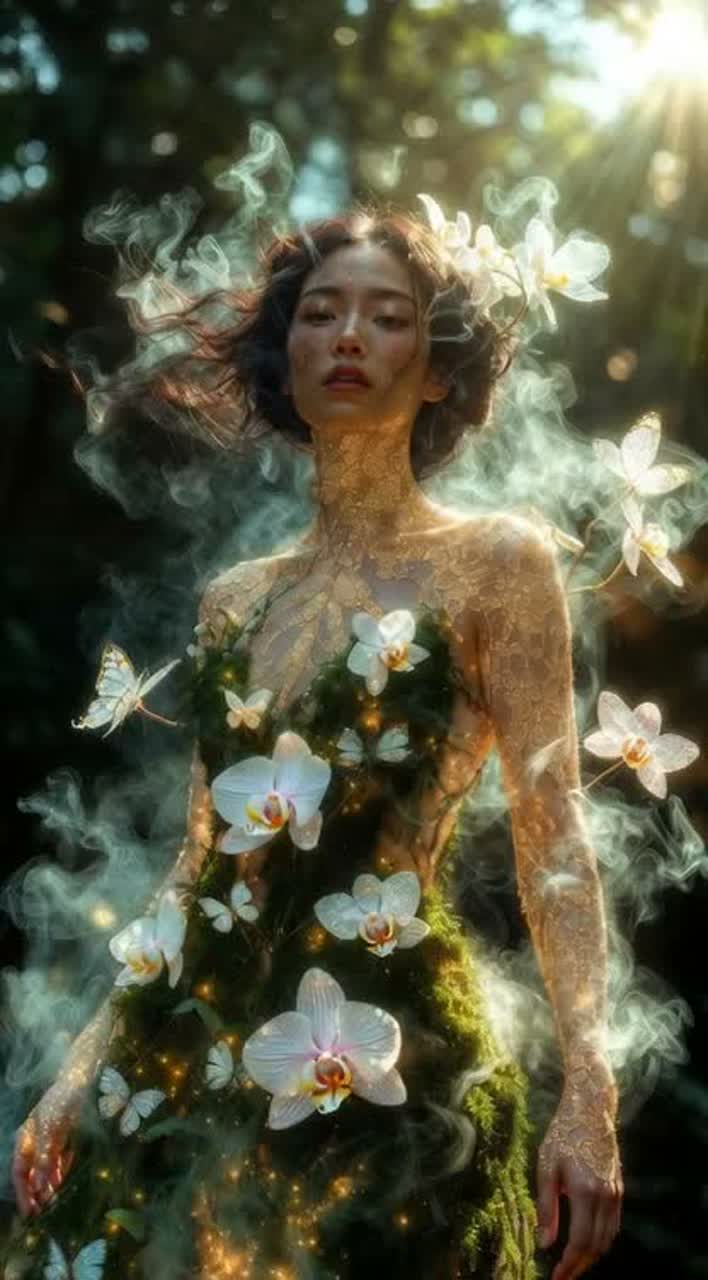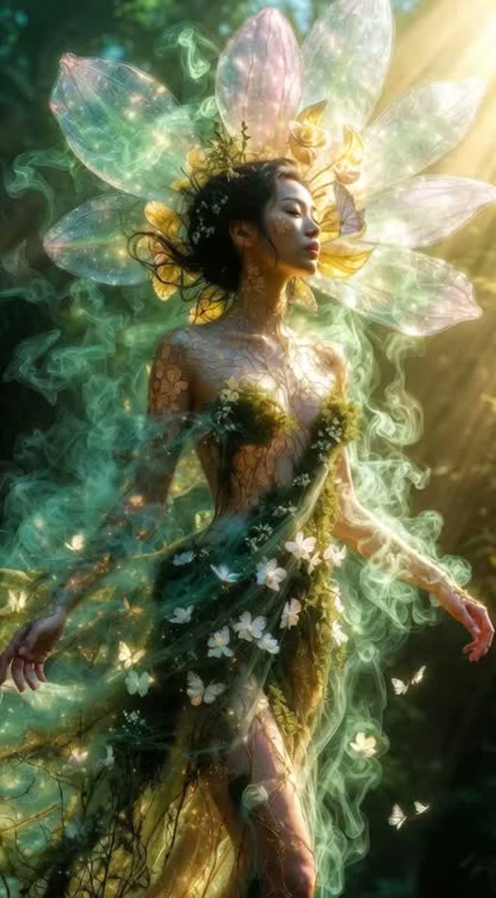 A slow, flowing ethereal Mandopop ballad opens with delicate acoustic guitar and gentle harp arpeggios, supported by soft wind chimes drifting through high-reverb space, Lush strings swell gracefully beneath breathy, airy female vocals, weaving an acoustic folk warmth into the expansive soundscape