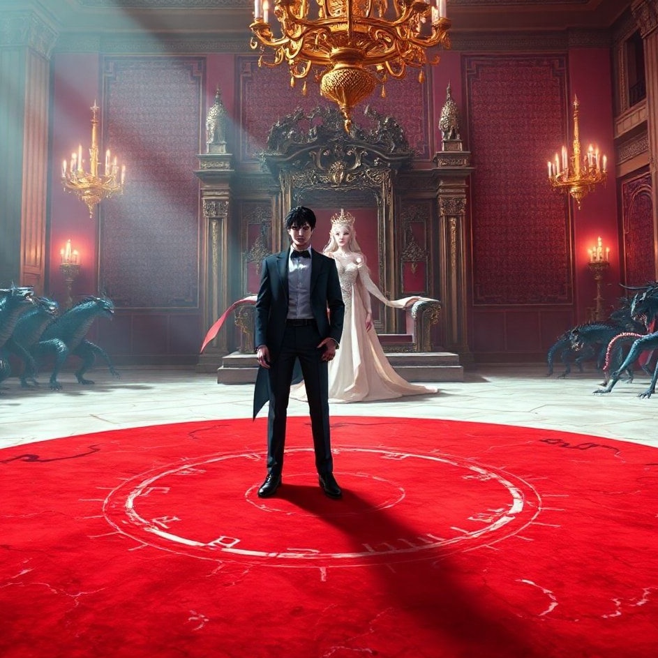[Dark and epic fantasy power metal with soaring tenor vocals], powerful choral harmonies, atmospheric organ synth layers, dynamic orchestral percussion, intense guitar solos, blending drama & heroism