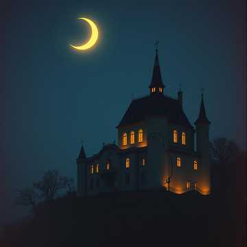 Dark fantasy power metal with foreboding melodies, bombastic orchestral brass, atmospheric synths, heroic tenor vocals, and triumphant yet restrained guitar riffs evoking tension and grandeur