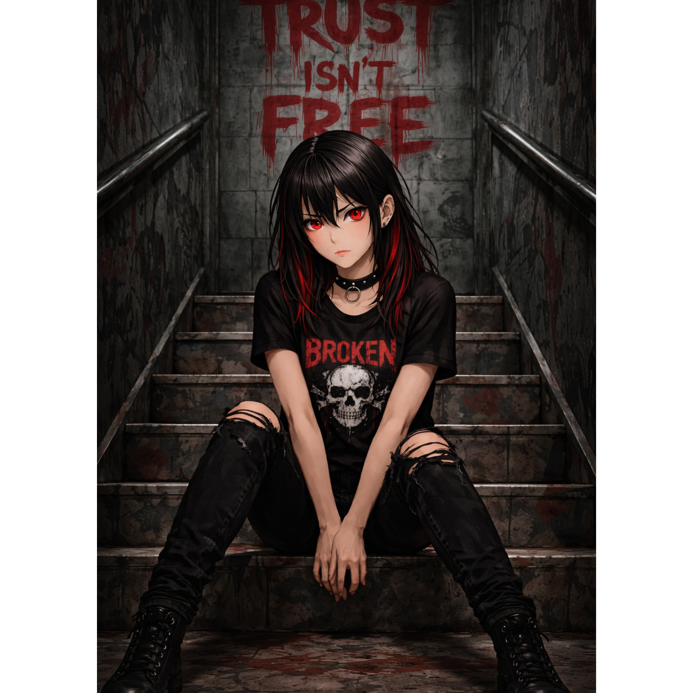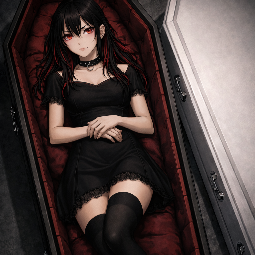 Opening with gritty, overdriven guitars and raw pop punk drums, the verses infuse dark electropop synths beneath growling bass, Riot grrrl energy charges distorted choruses with bold hooks and gothic harmonies, while breaks add haunting synthwave layers, trap hi-hats, and cyber goth-industrial samples, weaving angst, catchy melodies and shadowy atmospheric textures for a chaotic, vampire-tinged alt-electronic thrill
