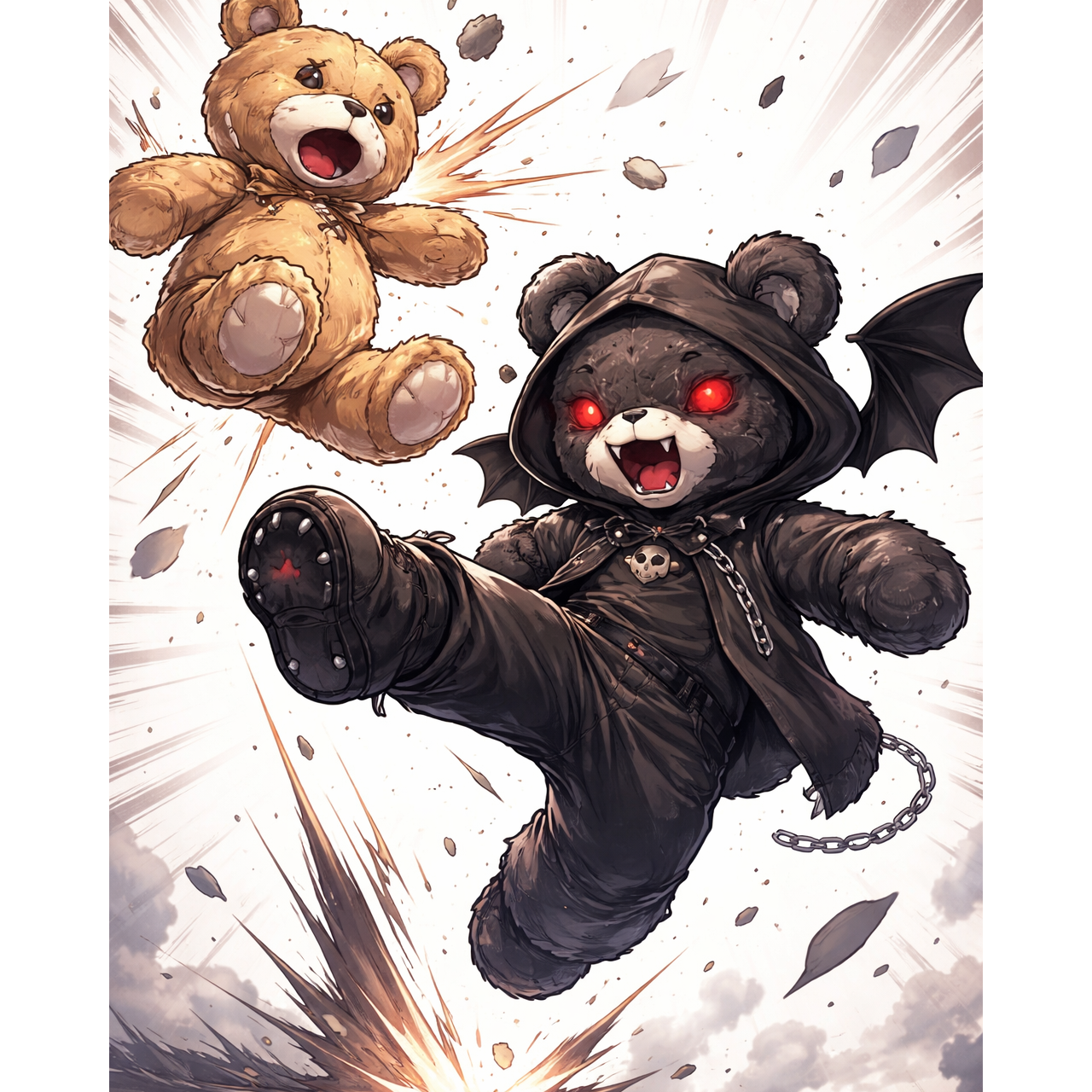 A hybrid of pop punk and grunge explodes out with a distorted, catchy guitar riff atop punchy drums and driving bass, Riot grrrl edge adds raw attitude—shouted gang vocals underline the angst, Verses simmer with alt rock tension, electronics pulse subtly, Choruses burst with melodic hooks, fusing gothic romance textures amid the chaos