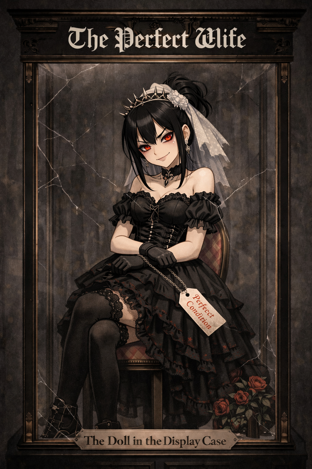 female vocals, dark alt-punk, punk snarl with dollhouse horror aesthetics, distorted bass, jumpy rhythms, unsettling hooks