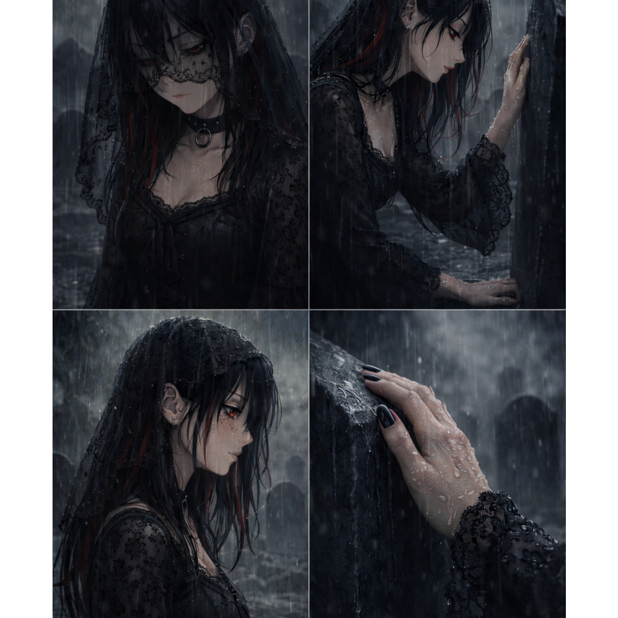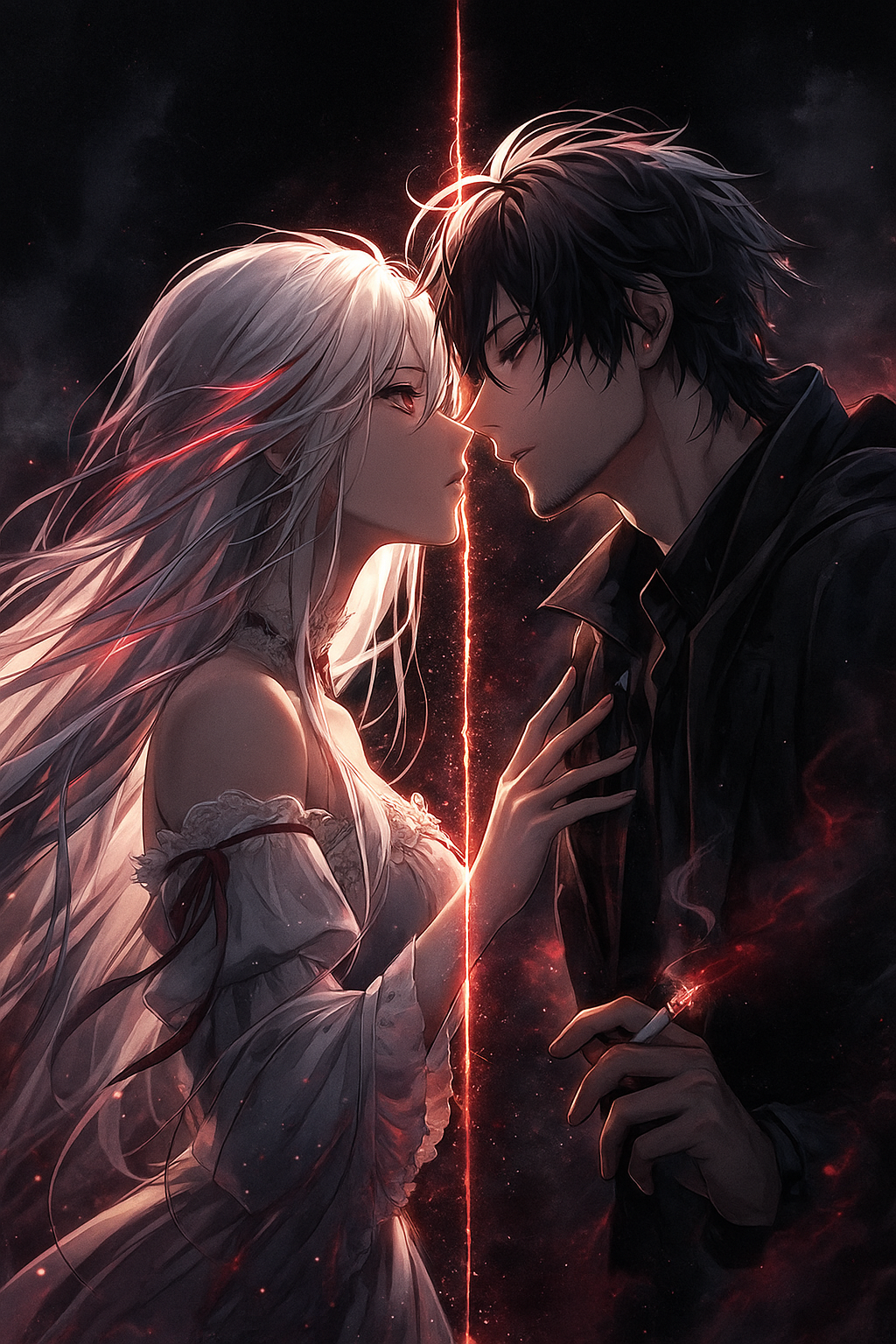 overall vibe: contrasting styles — male grunge chaos blending with female dreamgaze beauty; gritty verses paired with ethereal drifting sections; dramatic alt-goth atmosphere; no realism, emotional and atmospheric