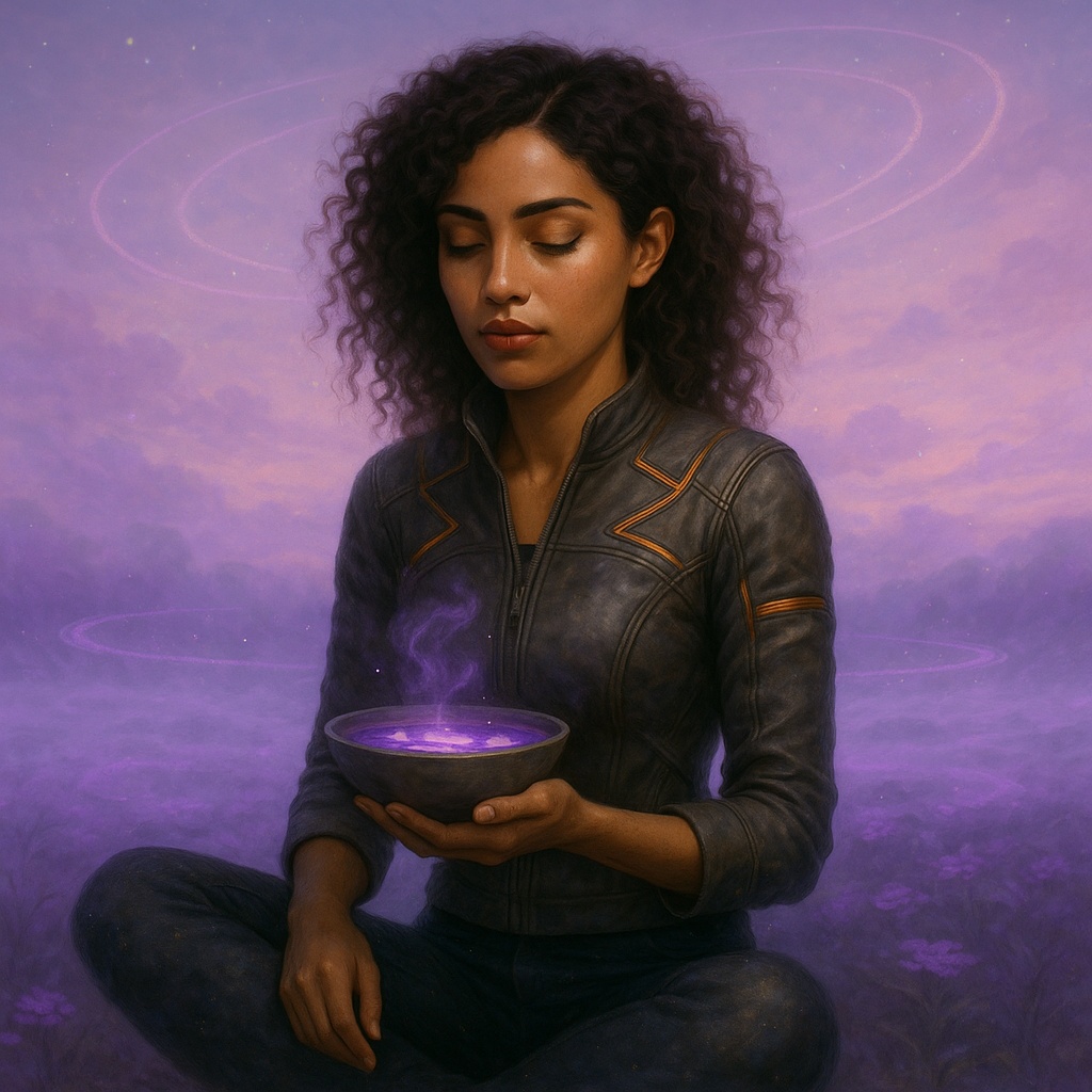 soulful female vocalist, ambient R&B, dream pop, psychedelic soul, futuristic, galactic, dreamy, floating 808 bass, space sounds