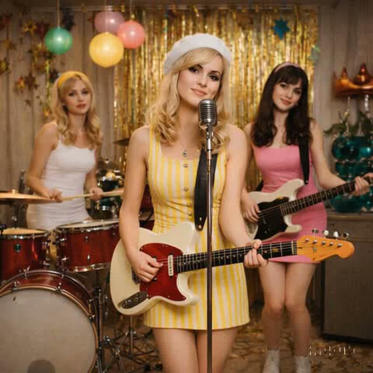 A vibrant yéyé pop groove kicks off with punchy drums, bouncy melodic bass, bright tambourine, and echoing guitar riffs, Playful handclaps and smooth all-female harmonies shine in the verses, Choruses explode with angular synths, sharp brass bursts, and warped ’60s effects, delivering a sugary, super girly, vintage-catchy energy throughout