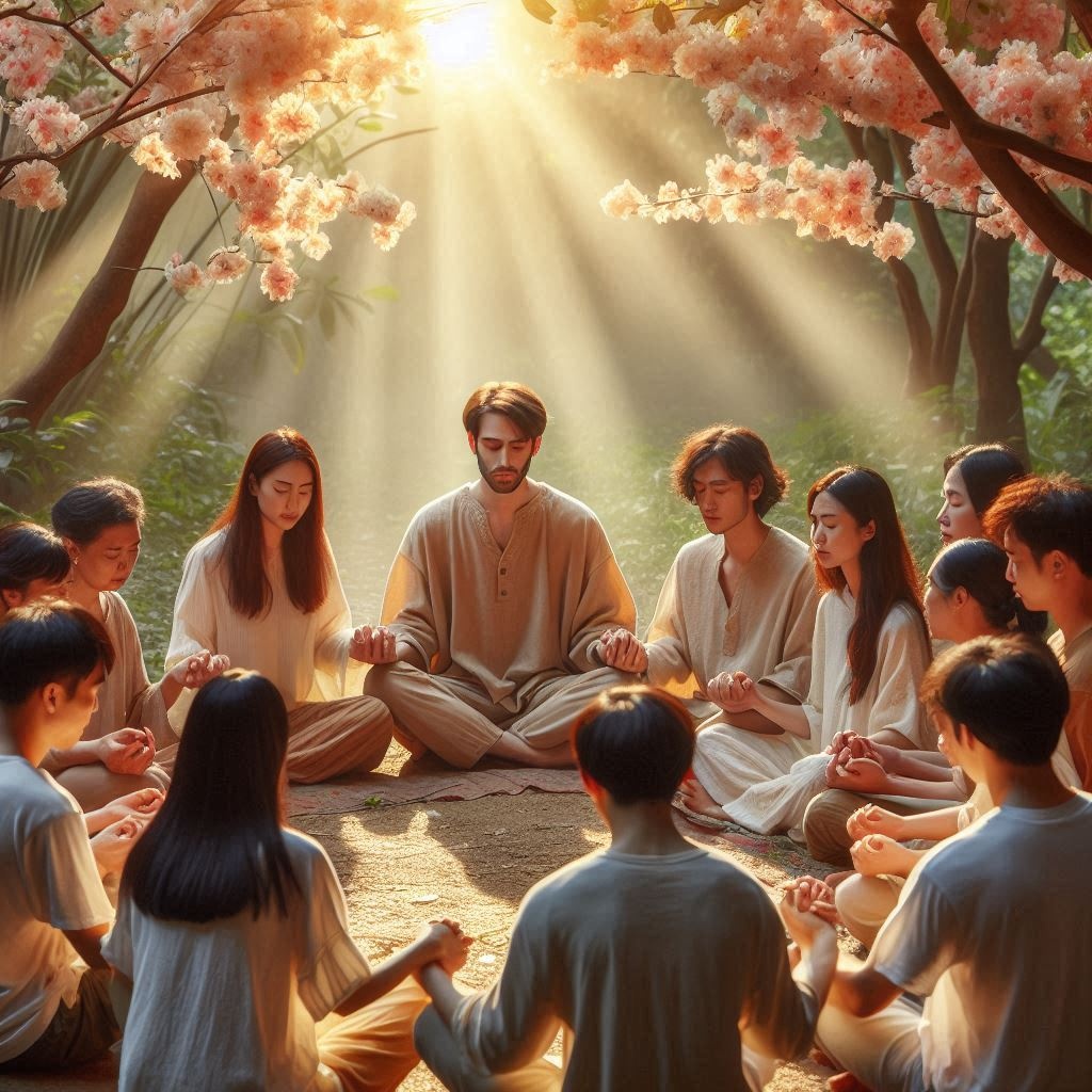 Czech song, Gregorian chant with soft acoustic guitar and cello, touching and loving atmosphere, One male voice, layered in harmony, Sung in Czech, choir intro and choir outro