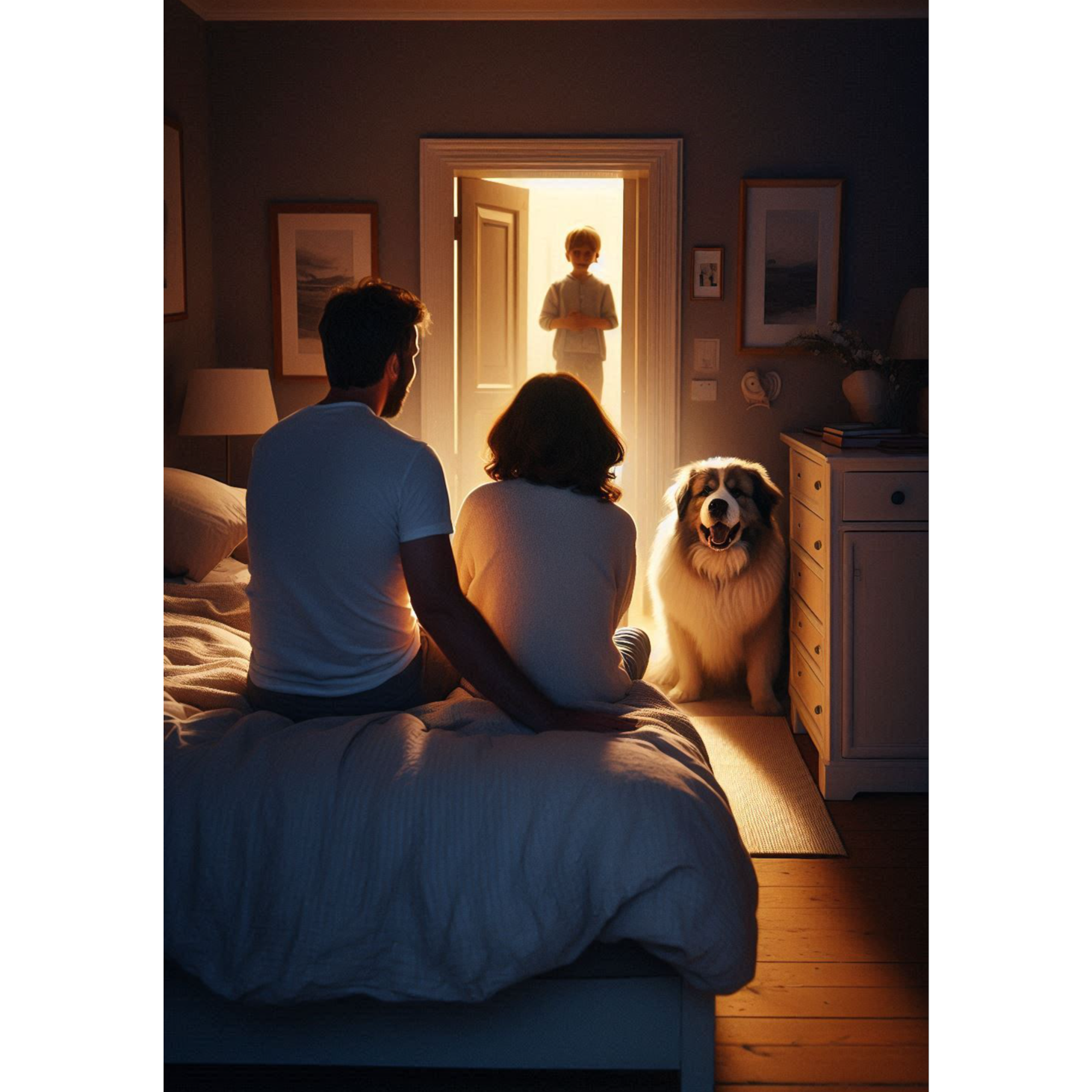 Spoken‑word dialogue in Czech, alternating line by line between female and male voices, Delivery: quiet, intimate, slightly embarrassed, conversational, Content: awkward but believable domestic interruptions (children, pets, phones, squeaky bed, mosquito, cramps), **Arrangement:**