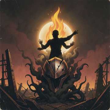 A dark, raw, aggressive rap‑metal fusion track built around heavy industrial percussion, distorted bass, and atmospheric horror‑tinged pads, Vocals switch between a cold, controlled rap delivery and a tortured, melodic growl in the chorus, The tone is introspective but savage, focusing on scavenging strength from demons, turning darkness into power, and surviving internal war, The energy should feel like a creature evolving through pain, with cinematic tension, metallic textures, and a relentless pulse, The performance is intense, emotional, and unfiltered, blending modern trap cadence with metal grit, The atmosphere is oppressive but empowering, like rising from a pit with stolen fire, No disses toward the artist, no references to outside writers, fully original persona‑driven darkness