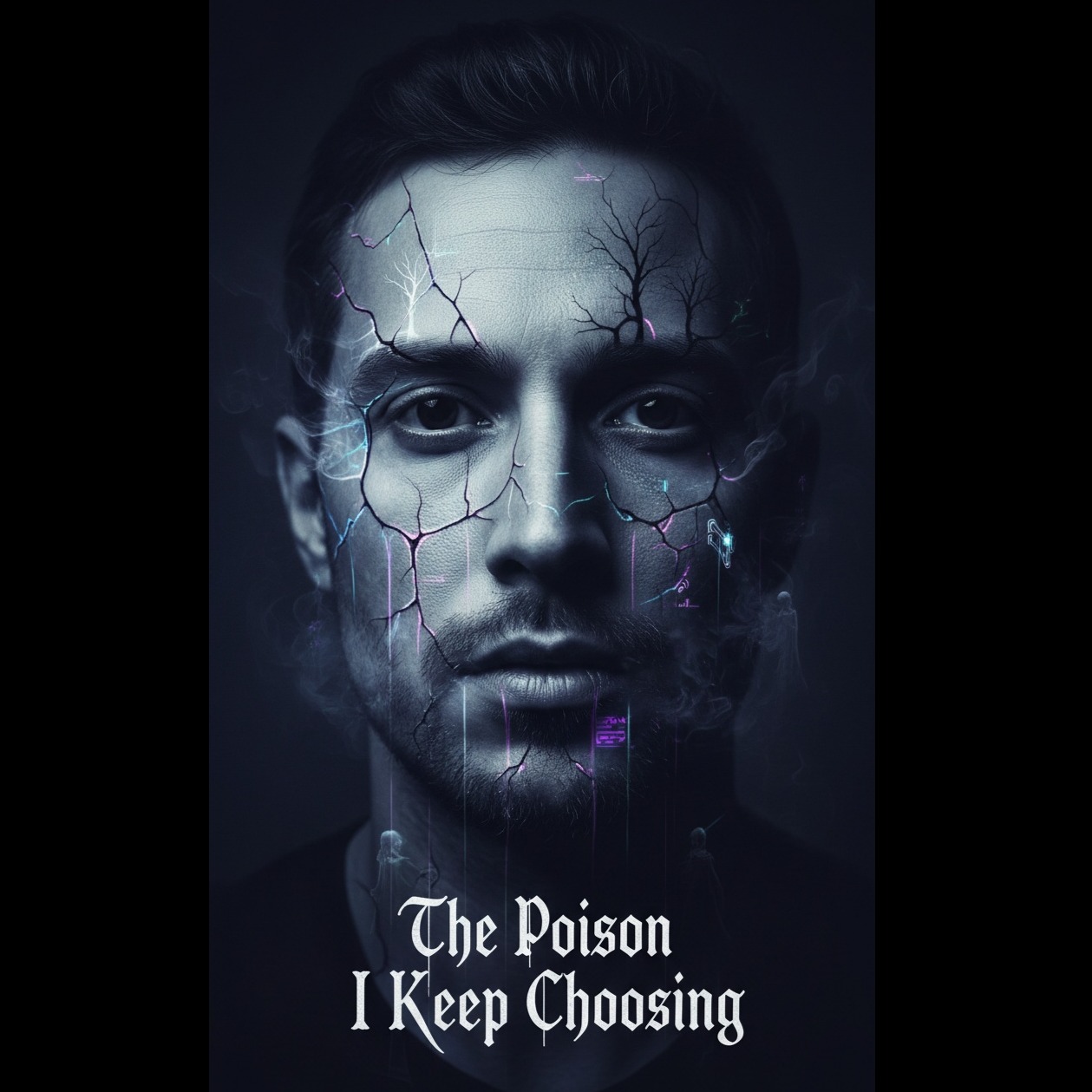 dark pop, moody, minimalist, psychological tension, slow to mid tempo, clean but atmospheric production, haunting male voice, soft and controlled tone, subtle distortion, ambient textures, light glitch elements, deep bass, simple beat, reverb but balanced, introspective, melancholic, eerie but accessible, smooth dynamics, modern sound, emotional and restrained