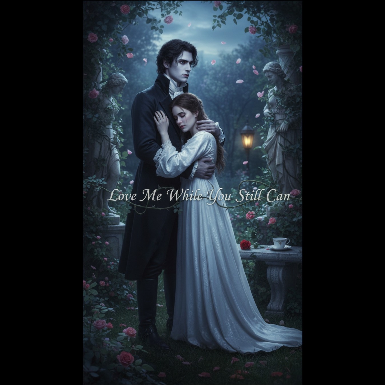 Vocals: Strictly alternating male and female vocals throughout, Male voice sings alone in his sections, female voice sings alone in her sections, both voices sing together only in choruses, drop, bridge duet and outro, Voices must never blend outside of marked duet sections, Overall Style: Cinematic vampire love story duet, raw masculine emo rap vulnerability against ethereal feminine dream pop longing, crashing together in dark alt rock choruses, darkwave atmosphere holding everything beneath