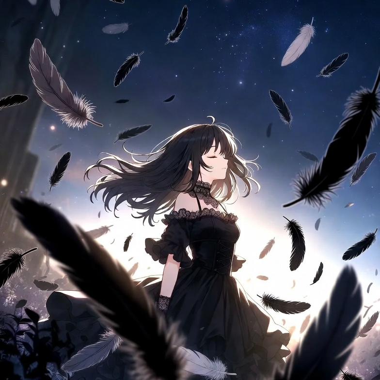 Ravens Rock, [Style]: Futuristic Emotional J-Rock, Female Japanese Vocals, Twin 7-string guitars drive a metallic yet transparent J-Rock tone, Dual-track setup: clean + chorus vs light-drive, hard-panned L/R, precise 16th-note pulse, 1/8 dotted delay adds spatial depth without masking fundamentals, Rhythm features tight palm-muted low-string riffs (D-modal), mechanical alternate picking, and clean/overdrive hybrid for sharp attack; dynamic strums with controlled transients, Arpeggios use subtle chorus, sync’ed delay tails for futuristic shimmer, occasional reverse ghost notes for propulsion, Leads employ micro-bends, wide vibrato, position shifts; subtle wah and light saturation shape sustain, Tone balances metallic mids (2, 5–4 kHz), tightened low-end, minimal modulation depth, and rhythm/lead clarity at 185 bpm