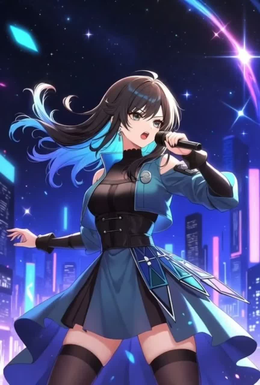 kawaii pop and EDM, at 158 BPM, quirky Pop, emotional, EDM, dramatic, math rock, Cutting guitar play, piano, dance music, fast tempo, powerful, electronic, guitar, drum, bass, upbeat, Japanese female lead vocal, chorus head high note+harmony