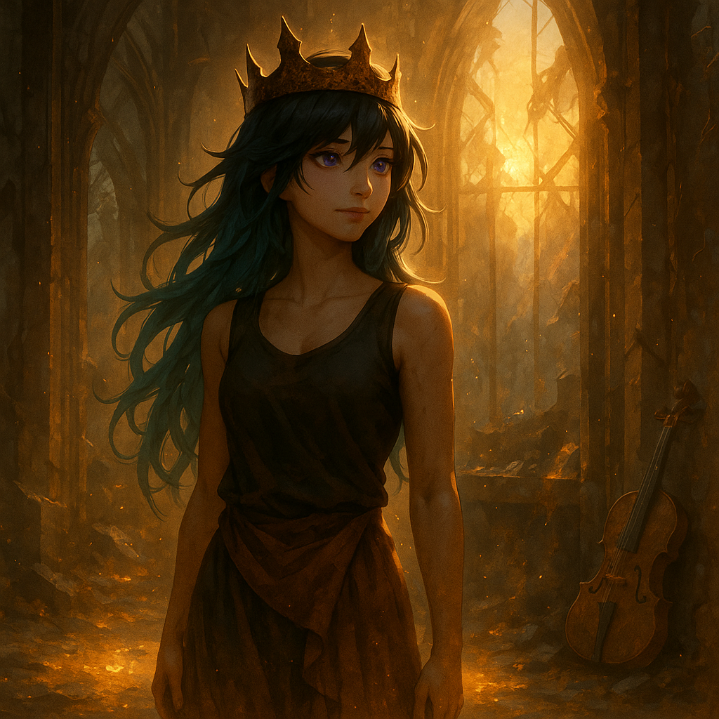 Melodic death metal meets cinematic symphonic metalcore — an anthemic clash of fury and resilience, Dual guitars in Drop C lead a relentless drive with blast-beat drumming and sustained bass pressure, Clean arpeggios bloom into thunderous harmonies as ethereal choirs and orchestral strings rise behind layers of growl and female vocals, The song builds from a slow cinematic intro into surging melodic chaos, carrying a tone of vengeance and liberation, A soaring twin-lead guitar solo burns through the bridge before the final chorus erupts in full symphonic power, The outro fades with echoing piano, fading strings, and the last sustained guitar chord — defiant, haunting, unbroken
