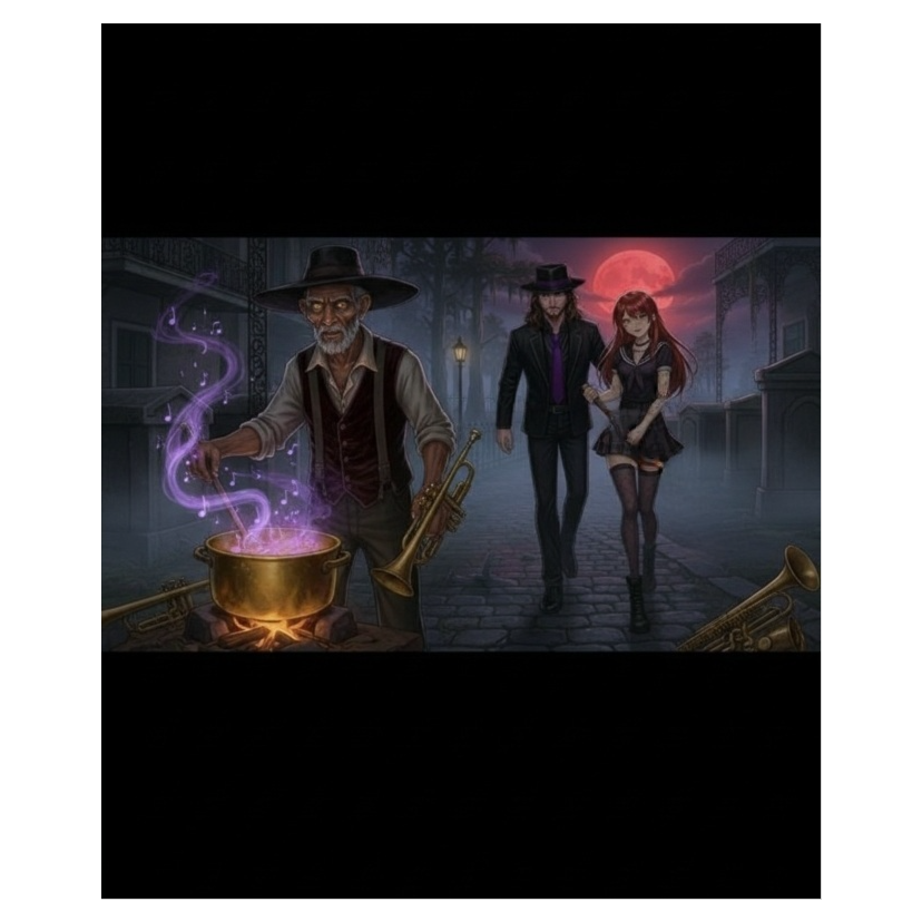 Harmonica or Dark Saxophone: For a haunting, jazzy vibe, consider adding a harmonica or a low, breathy saxophone but with effects that darken their tone, Synth Brass, ‑No Country Twang, ‑No high pitch female vocals, ‑No culling or yodeling sounds or rythems