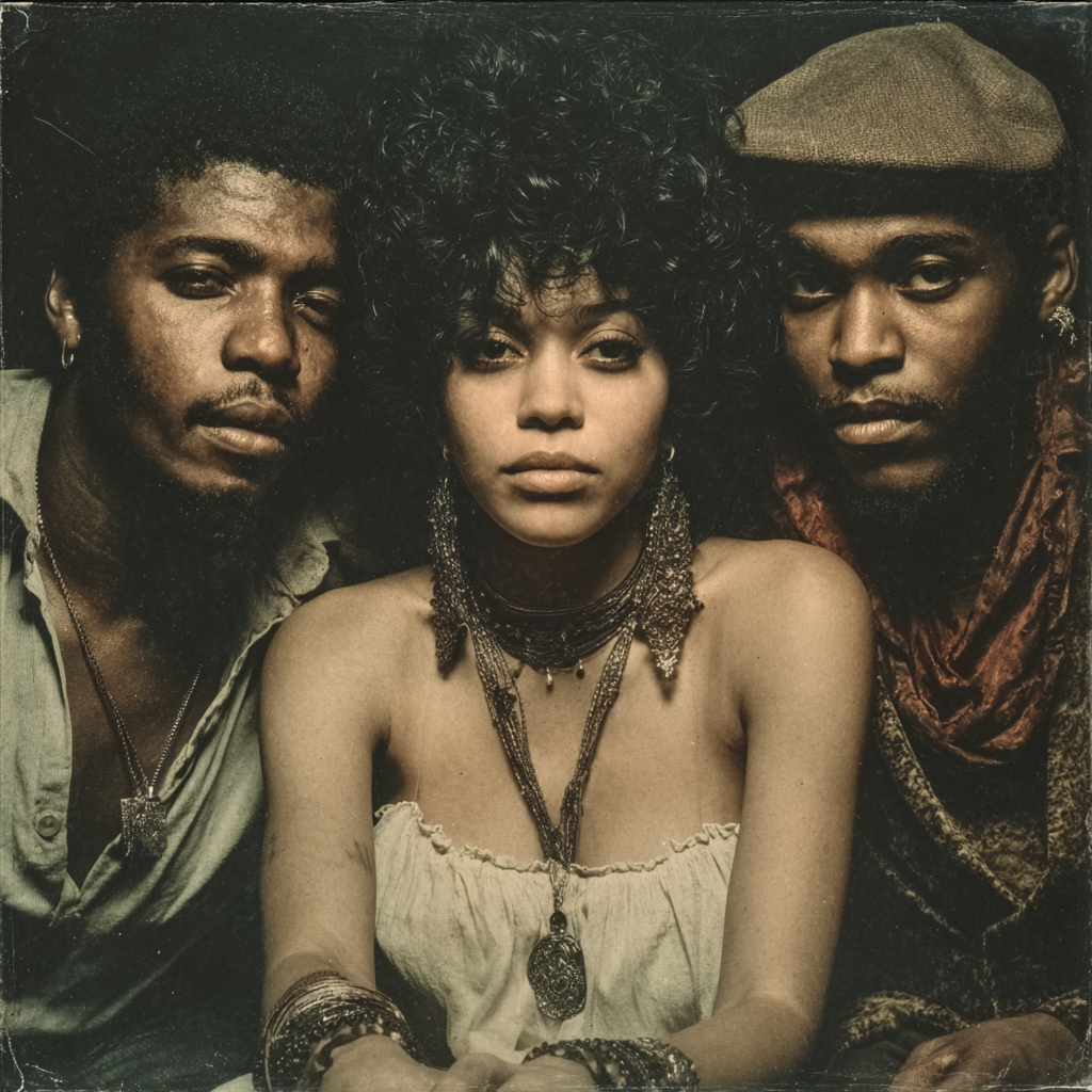 Style: Psychedelic funk collage driven by analog groove and retro-futurist texture — horns and synths converse like voices in a cosmic jam, breakbeats chopped on tape, gospel-style chords pulse through modular hum, and everything feels alive, imperfect, and joyfully human