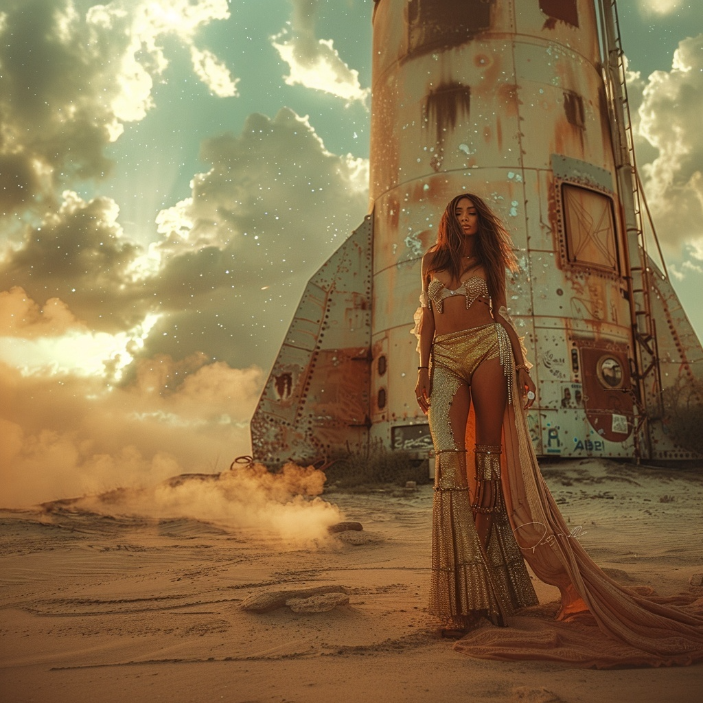 A black cat leaps between stars, its paws landing on bursts of Moog bass that rumble like distant thunder, Jazz fusion chords shimmer in suspended ninths and sharp elevenths, cutting luminous shapes against brutalist boom bap grooves, Gospel chop drumming cascades in flurries of thirty-second notes, roaring like a collapsing empire’s walls, Fragmented voices from 1950s sci-fi films—“Danger… Future… System Collapse…”—echo as if from broken satellites, stretched and distorted through tape echo, The atmosphere fractures, bending between chaos and transcendence, as reel-to-reel hiss swallows the silence