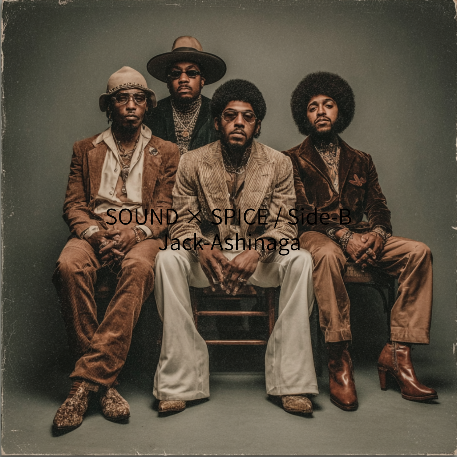 aromatic afterglow, SP-1200 grit creates a deep, simmering texture like a slow-cooked curry, Horn stabs and percussions pop like spices hitting a hot pan, Barbershop harmonies and catchy vocal riffs leave a memorable hook, Cool and stylish, yet fun and addictive — the sound feels like heat, aroma, and flavor rising from the music itself