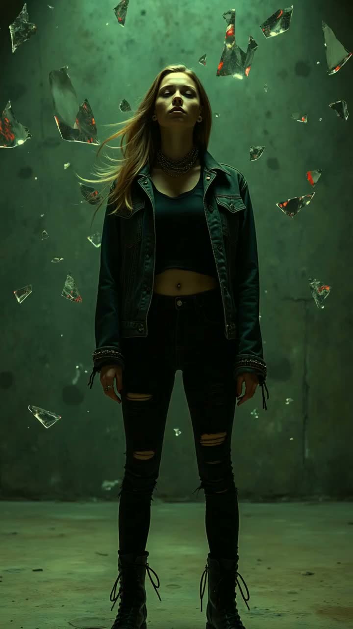 Metalcore and nu metal fusion with minimal grunge influence, Drop-tuned 7-string guitars delivering tight palm-muted chugs and dissonant riffs, Aggressive distorted bass with sub drops, Dynamic live drums featuring relentless double bass patterns, blast-inspired fills and crushing half-time breakdown slams, Female lead vocal alternating between powerful clean melodic belts and raw high and guttural screams, Layered gang shouts and call-and-response textures, Atmospheric guitar delay intro leading into explosive, riff-driven choruses, Heavy metalcore breakdown with syncopated chugs and bass impacts, Dark, intense, cathartic