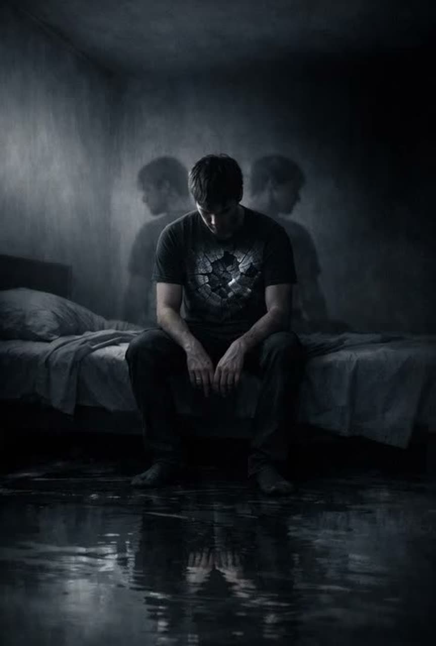 A deep trap track featuring resonant, moody 808s underpinning sparse, crisp hi-hats and ambient pads that craft a dark, haunting atmosphere, Clear, present male vocals shift from slow, emotive verses to fast, urgent chorus delivery, Subtle synths enhance the textured, somber soundscape
