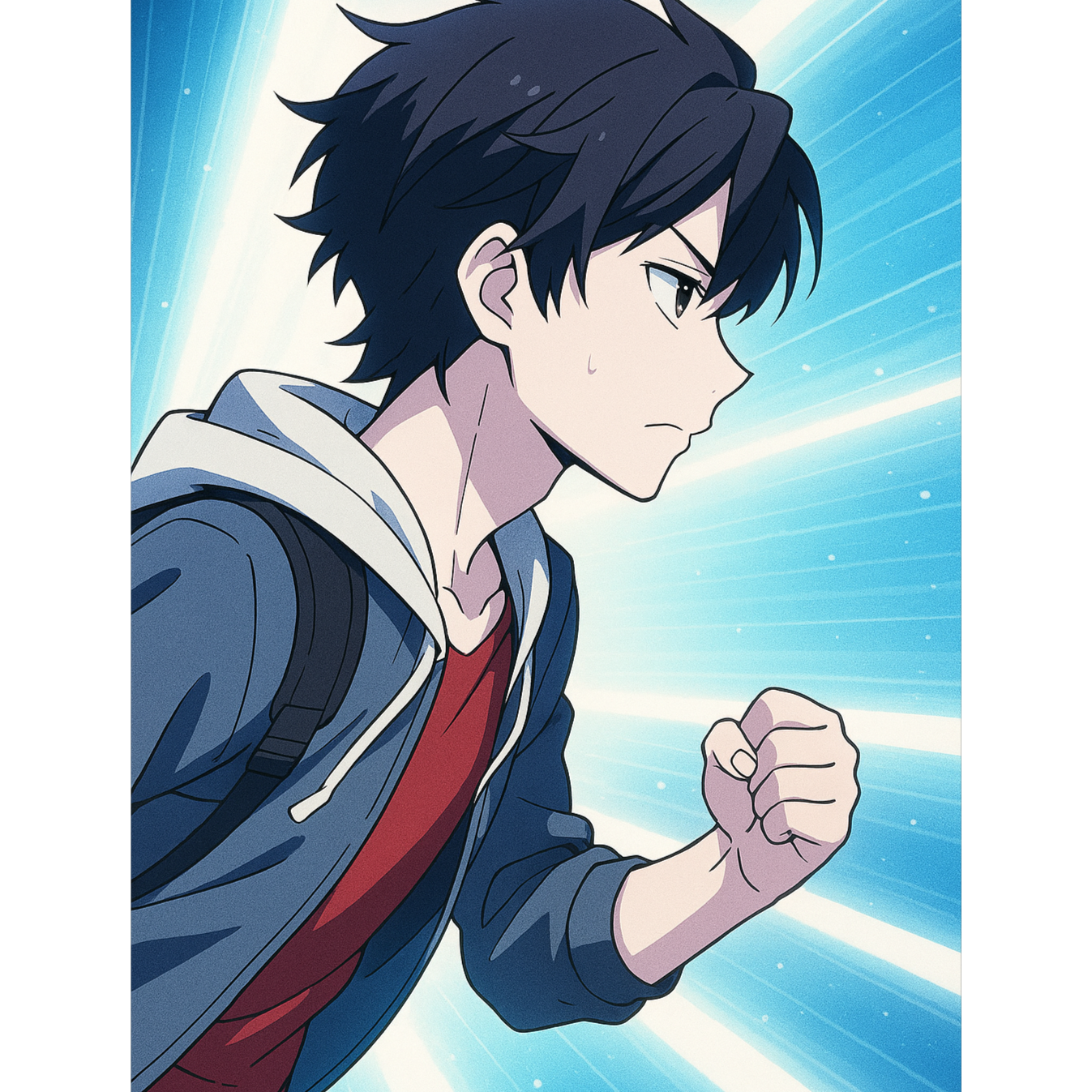 J-Rock, emotional alternative rock, Male vocal, emotional, natural, switching from light & narrative in verses to powerful & dramatic in choruses, Electric guitar (clean in verses, distorted in chorus), bass, drums with strong snare, subtle synth/strings for atmosphere in bridge and outro, 135 BPM (upbeat in verse 1, heavier and slower in bridge, big dramatic finale), Verse 1 — bright, energetic, playful (friends running, geocaching), Verse 2 — more tense, realization of being stuck in a loop, Chorus — powerful, dramatic, same every time (about the Loop), Bridge — dramatic slowdown, rising hope (pillar of light appears), Verse 3 — climax, emotional farewell: she pushes him with a tearful smile, says “Go, This is my curse, I’ll stay here, ”