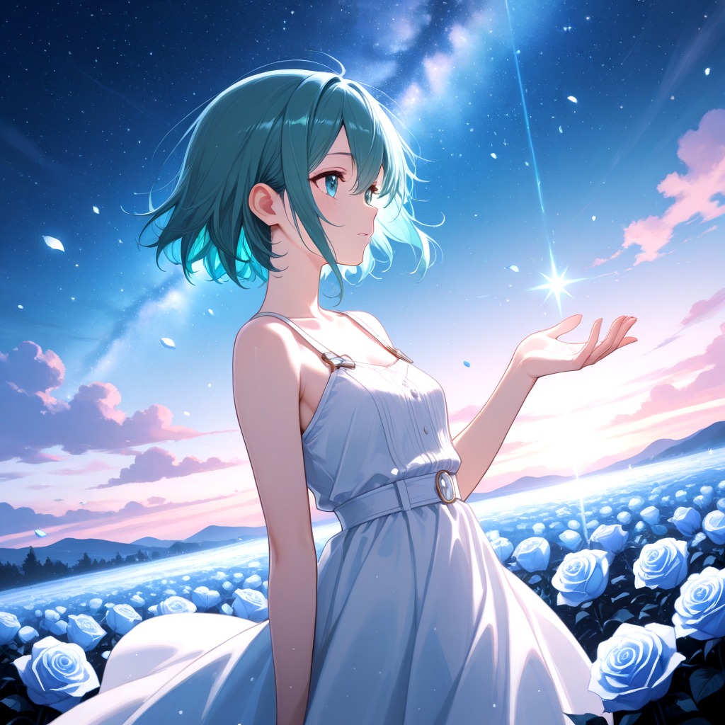 High-energy Japanese rock and J-Pop fusion characterized by intricate, fast-paced electric guitar work and powerful female vocals, The track opens with a technical, shred-heavy guitar solo featuring rapid alternate picking and melodic flourishes over a driving 4/4 drum beat at approximately 180 BPM, The verses transition into a more atmospheric texture with clean, chorused guitar arpeggios and a prominent, melodic bassline, while the choruses explode into a wall of sound with thick, distorted rhythm guitars and soaring vocal melodies, The vocal delivery is emotive and dynamic, utilizing a wide range with occasional vibrato and powerful chest-voice belts, Production is polished and modern, featuring crisp drum samples, layered vocal harmonies, and a wide stereo field for the guitars, The structure follows a traditional J-Rock format with a dramatic bridge and a final climactic chorus, ending with a brief instrumental flourish