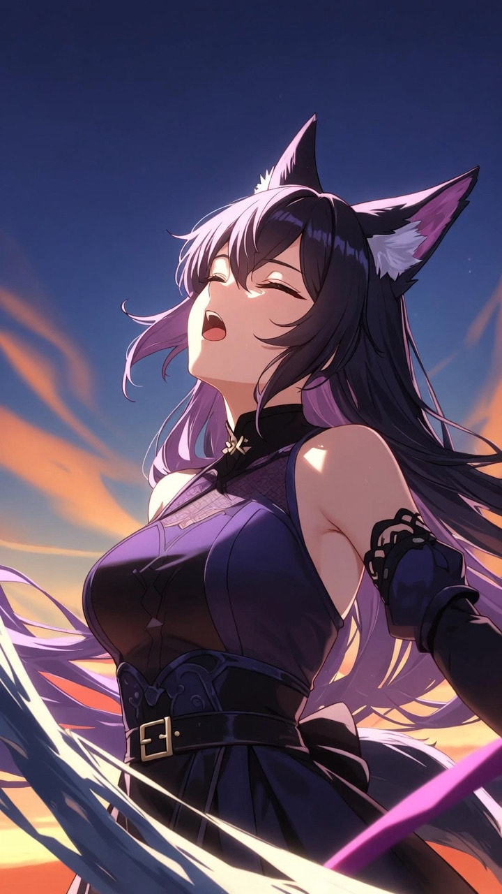 Cyber-Enka Anthem With 4-On-The-Floor Beats, Cyber Percussion, Taiko + 808 Hybrid Kick, Shamisen With Bitcrush, Shinobue Layered With Synth Leads, Neon Pads, Fm Bass Stabs, Vocal: Kuro, Mid–Low Tone With Strong Kobushi, Raspy Warmth, Pitch Dips, Vibrato Curls, Dramatic “Ma” Pauses, Mix Of Cyber Pop, Hard-Hitting Digital Textures, And Traditional Enka Emotion, Bright Saw Arps, Glitch Effects, Warm Reverb, Heroic, Futuristic And Nostalgic