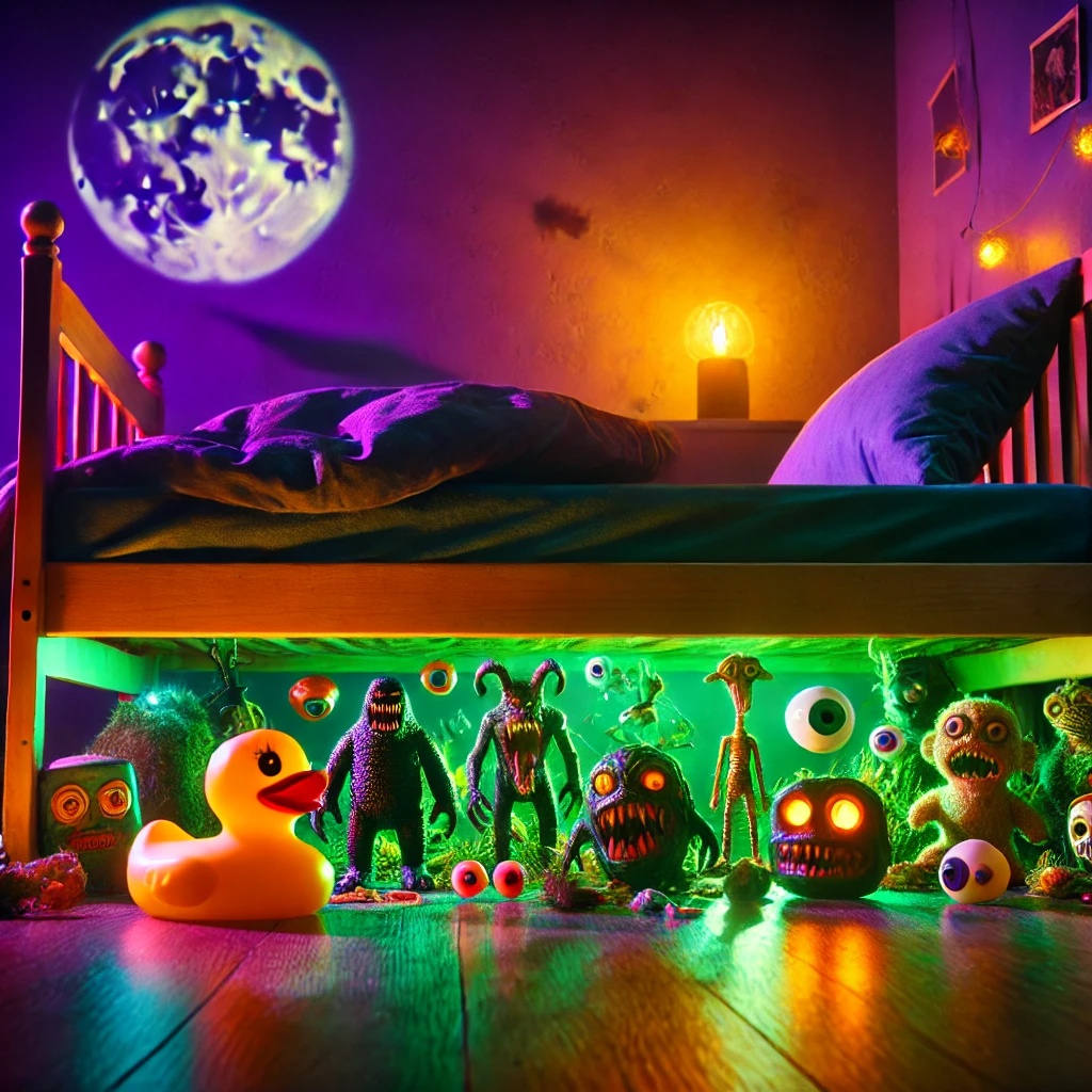 Creepy alt-rock, whispered female vocals, gothic dread, glitchy FX, Seussian rhyme, eerie chant bridge, Stupid-clever horror vibe, slow tense build