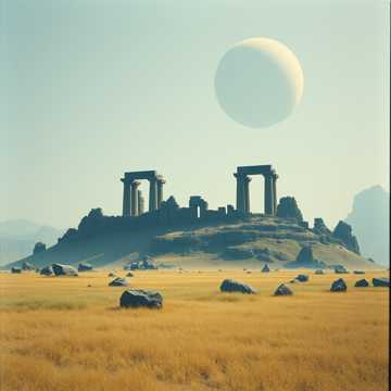 A sweeping orchestral soundtrack blending minimalist synth layers with evolving string and brass textures, Pulsing low-end electronics give momentum, while interwoven woodwind motifs and airy choirs build tension, Percussion crescendos mark transitions, balancing grandeur and a futuristic atmosphere