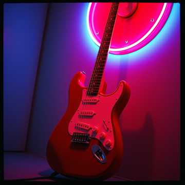 playful adventurous tone, theatrical, metal, electric guitars, pounding drums, glam metal, harmonic male vocals