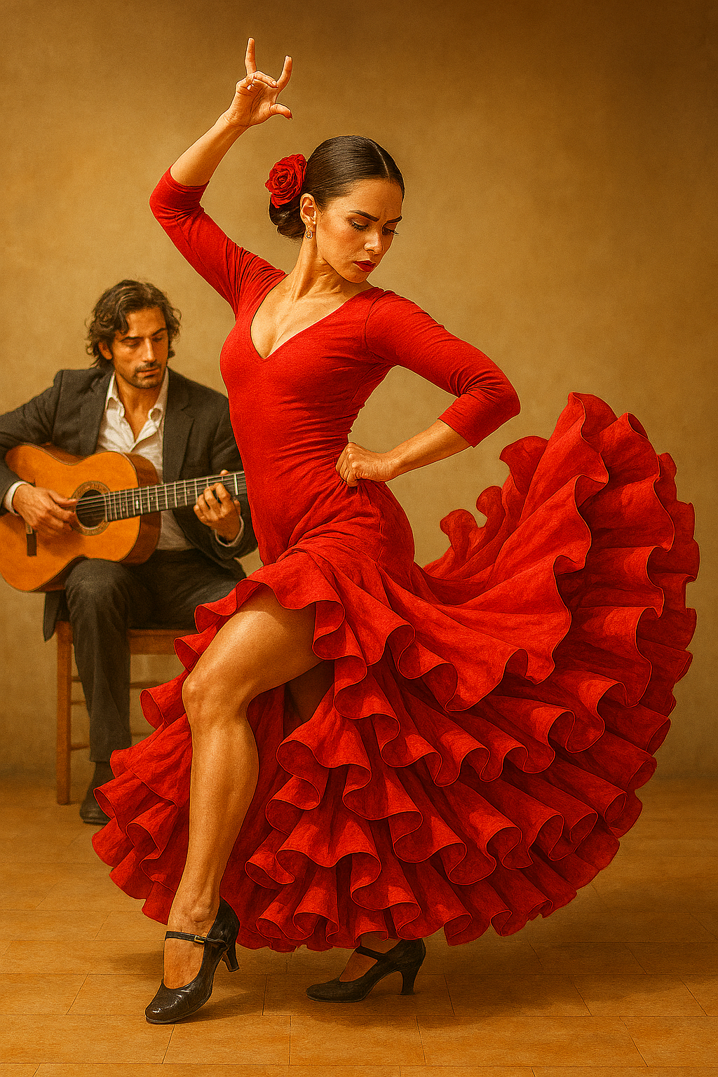 Soft lights, smooth bass, and velvet voices intertwine — a soulful jazz-pop duet that drifts through midnight air, And a spanish touch, In Salsa rhythem, elegant, and timeless, where rhythm and emotion collide, guitar, deep