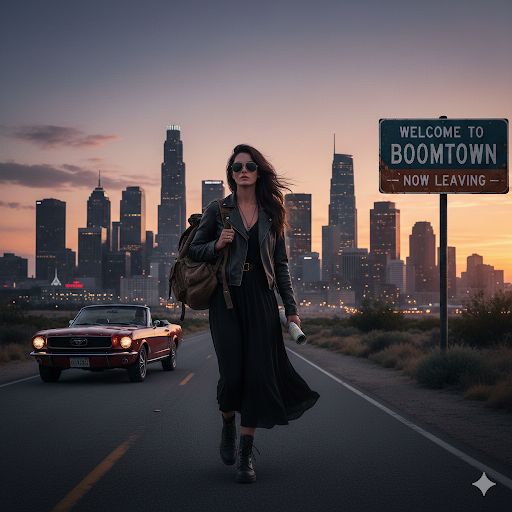 Driving classic rock track with a strong sense of motion and freedom, Mid-tempo groove (110–120 BPM), steady drums, pulsing bass and gritty electric guitars with melodic lead solos, Honest, expressive lead vocal with raw emotion and forward momentum, No nostalgia kitsch, Clean, powerful studio production with analog warmth, wide stereo guitars and a bold, timeless rock sound