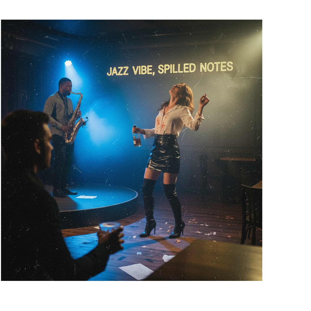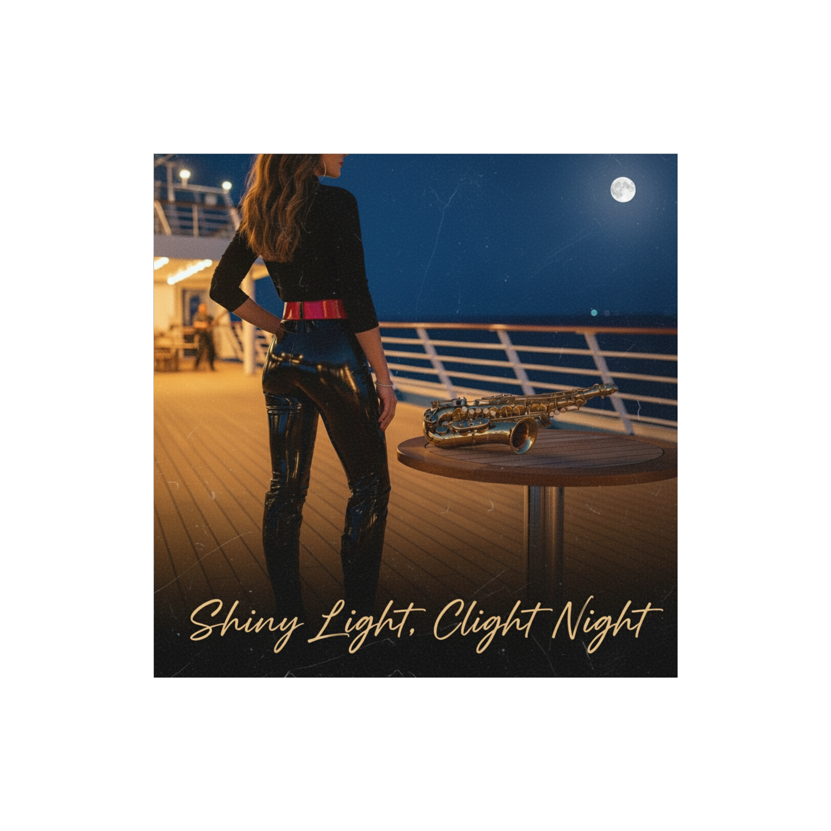 A slow jazz-groove blends with deep funk, setting an 86 BPM pocket in F# minor pentatonic, Warm, syncopated bass and crisp drums intertwine with electric keys and wah guitar, Saxophone leads with sultry, expressive lines across verses and bridges, Male vocals ride laid-back, while subtle vinyl crackle textures the track, After a final graceful sax solo, the song fades, closing with the sound of a needle lifting from vinyl