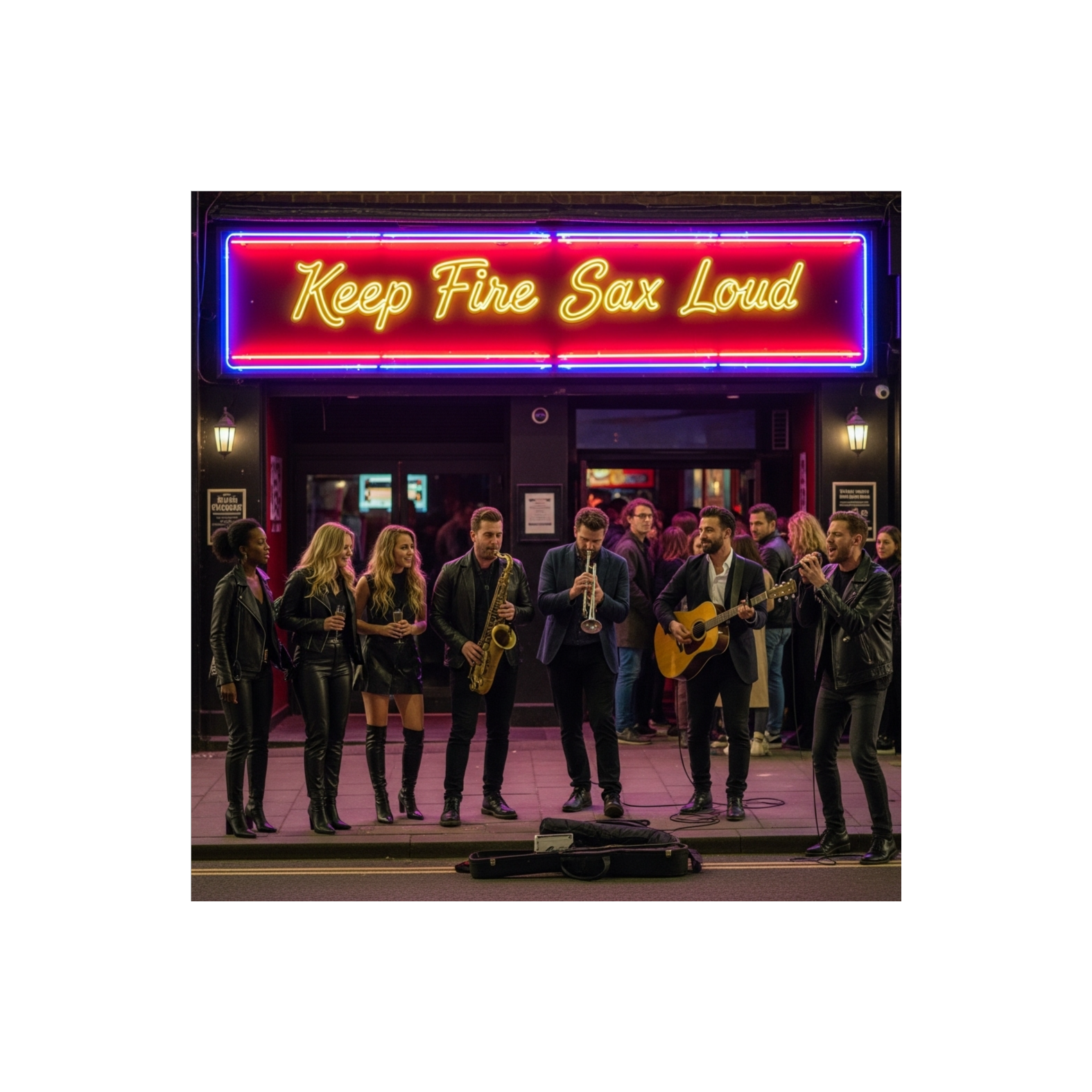 A high-energy fusion track in A Major bursts with groovy drums, punchy dance pop synths, and driving hard rock guitars, Virtuoso slapping bass and dazzling saxophone solos weave through the layered funk jazz-fusion arrangement, supporting commanding male vocals atop a dynamic, infectious groove, 6:36 minutes