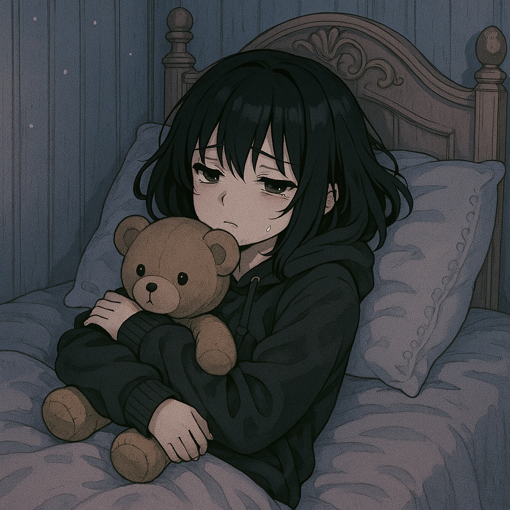 This dark bubblegum pop track opens with a warped music box line and lo-fi ambient layers, Soft, moody female vocals float over crunchy, experimental beats blending alt trap and emo, anchored by deep bass, Guitar plucks, toy piano, and toyish percussion—finger snaps, handclaps—create a creepy, playful groove, Trance synths with psychedelic effects swirl in as the chorus hits—catchy, infectious, but laced with unease, flipping between innocence and a surreal, horrorcore nursery vibe